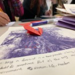 Lors de ces moments partagés, je récolte vos papiers pliés, déposés et signés, avec votre contact. Au fil du temps, à mon tour, j’insère dans mon dessin d’arbre vos mots par une mise en forme personnalisée, une maquette pour aboutir à des tirages originaux et limités.